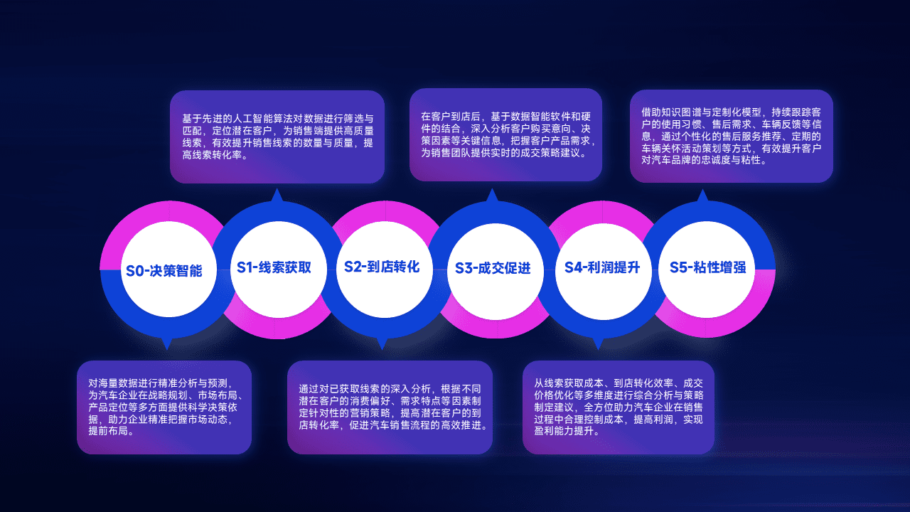 通过拓宽潜在客户来源、、、优化线索分配并提高到店转化率,,,以增强销售效率。。同时,,,,利用线索数据不断优化分析模型,,,,有效提升转化率,,,扩大营销影响力。。